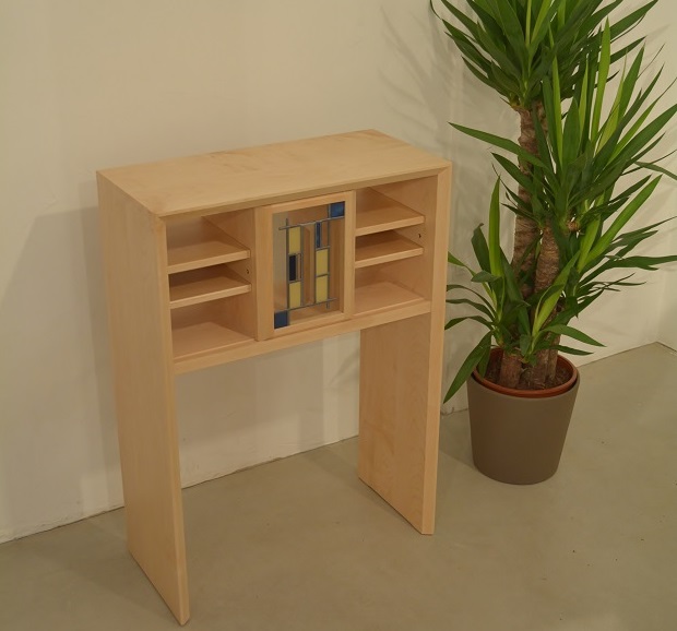 真ん中には、中身を隠すためのステンドグラスの引き戸を