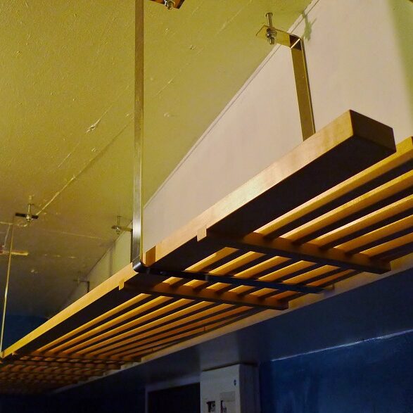 シェアハウスにお住まいのお客様よりご依頼を受け、スペースを有効利用するため、で吊り棚のご要望をいただきました。