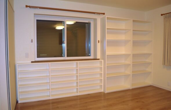 今回は圧迫感の出ない白のポリ合板を使用致しました。