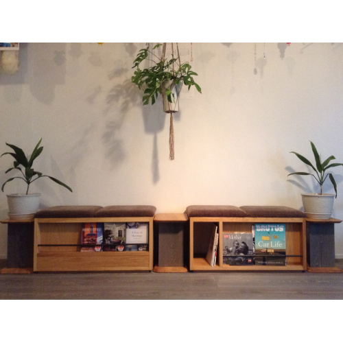 部屋数が少ないため、リビングのスペースを有効的に使いたいというご要望で、様々な機能を兼ね備えたベンチを制作いたしました。