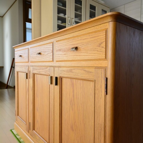 リビングとキッチンの間仕切りとして、 両側から使うことのできる