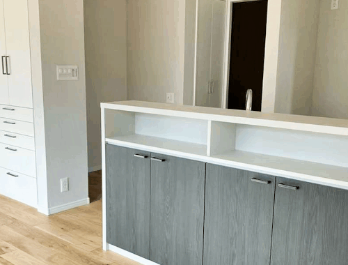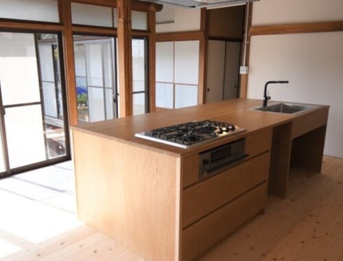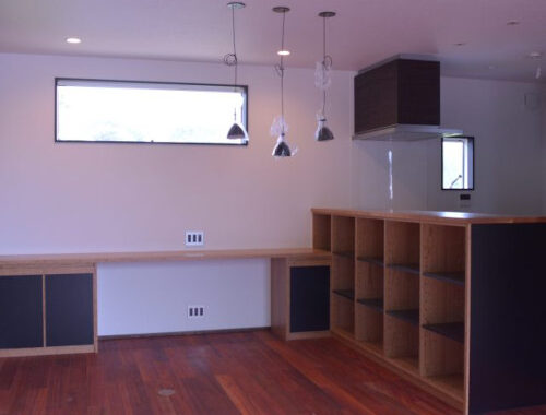 リビングとキッチンの間仕切りとして、 両側から使うことのできる