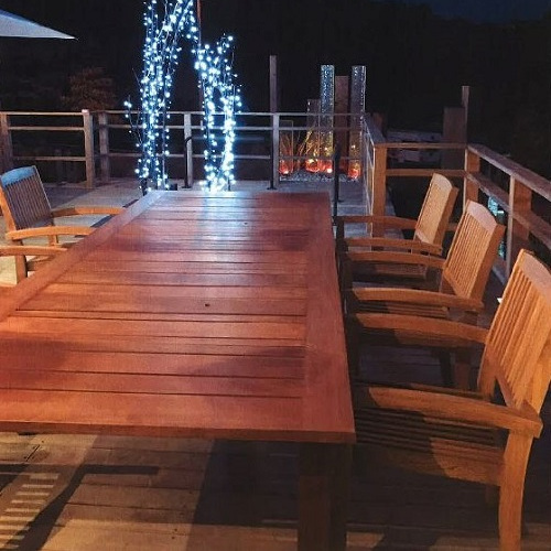 アフゼリア材でテラス席のテーブルを製作しました。