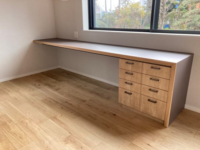 窓のある壁面に、造作デスクを製作しました。