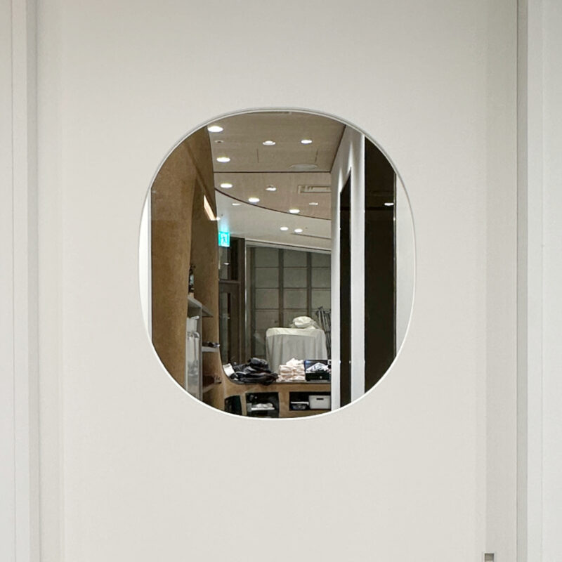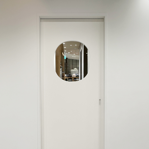 可愛らしい印象の楕円のガラス窓からは店内の様子を垣間見ることができます。