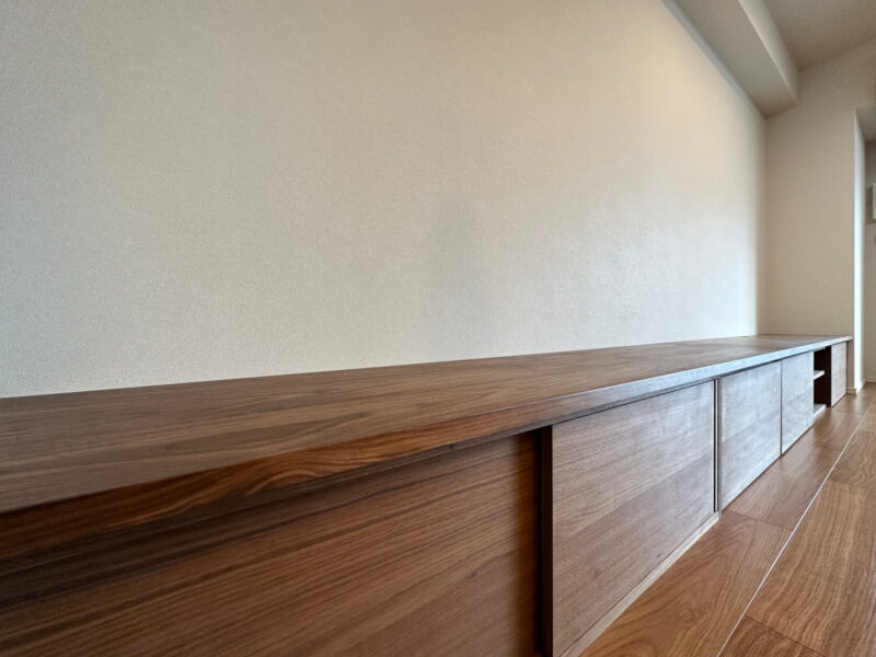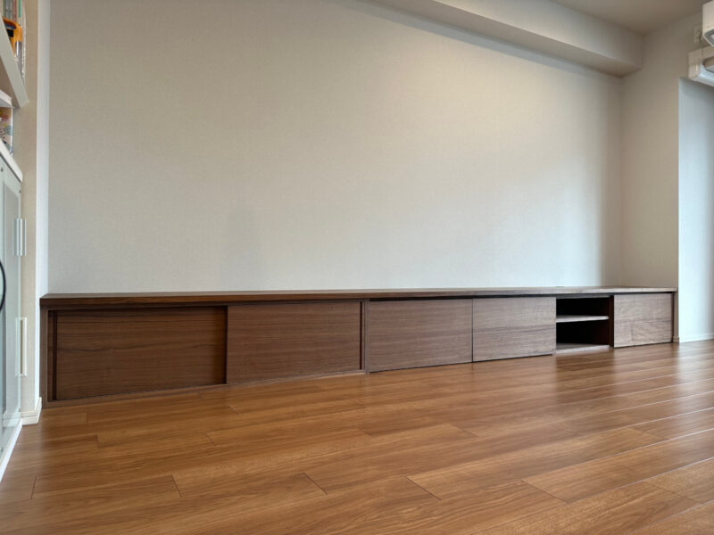 オーダー木製家具【ウォールナットの追い柾目が美しい超ロングTVローボード】横浜市 I 邸