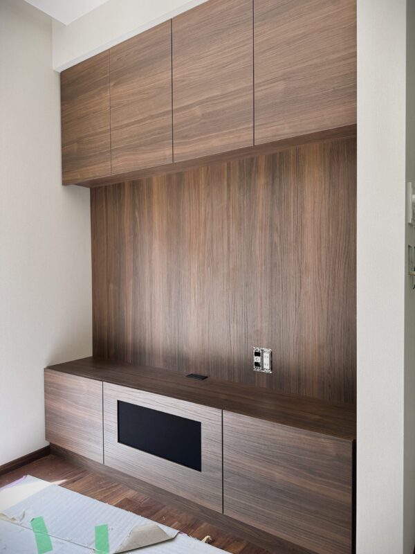 オーダー木製家具【玄関収納シューズボックスと壁面大型TVボード】 大阪府吹田市H邸