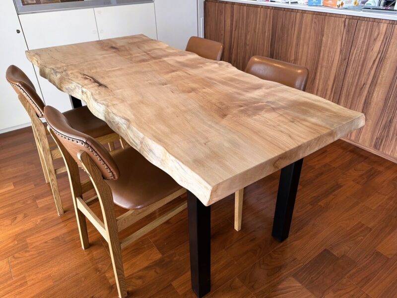 無垢のトチノキ一枚板ダイニングテーブルのオーダーメイドについてご紹介いたします。