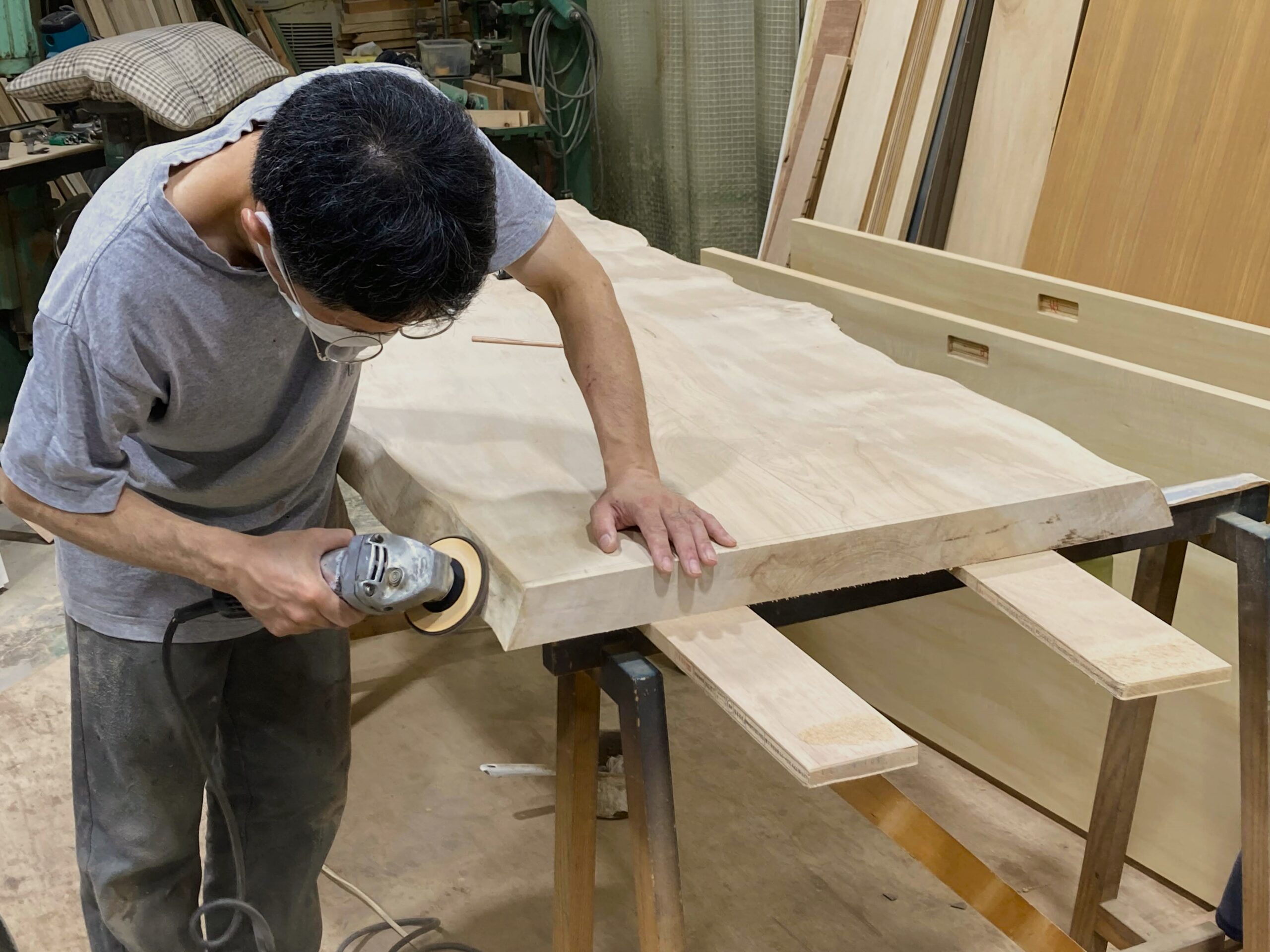 天板は、選定した素材の中からお客様にお選びいただき、職人がきれいに仕上げてから艶消しの塗装を施しています。