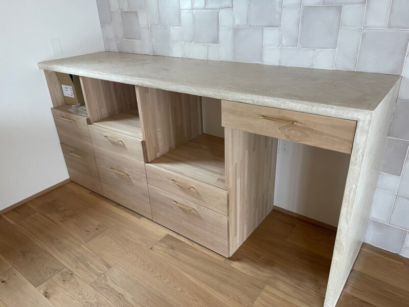3.オーダーキッチン(側面天板一体化+無垢材扉)