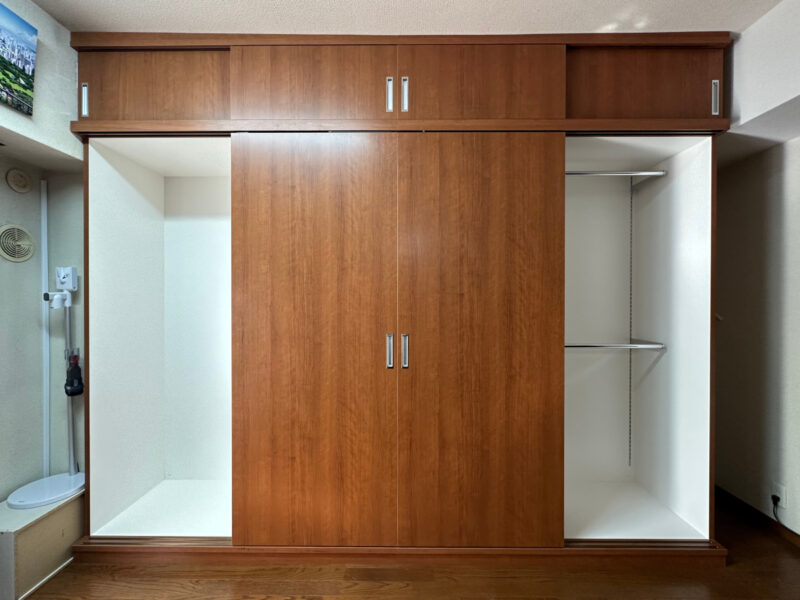 ・天井高を活かした3段構造(下部収納・中段クローゼット・上部吊戸棚)